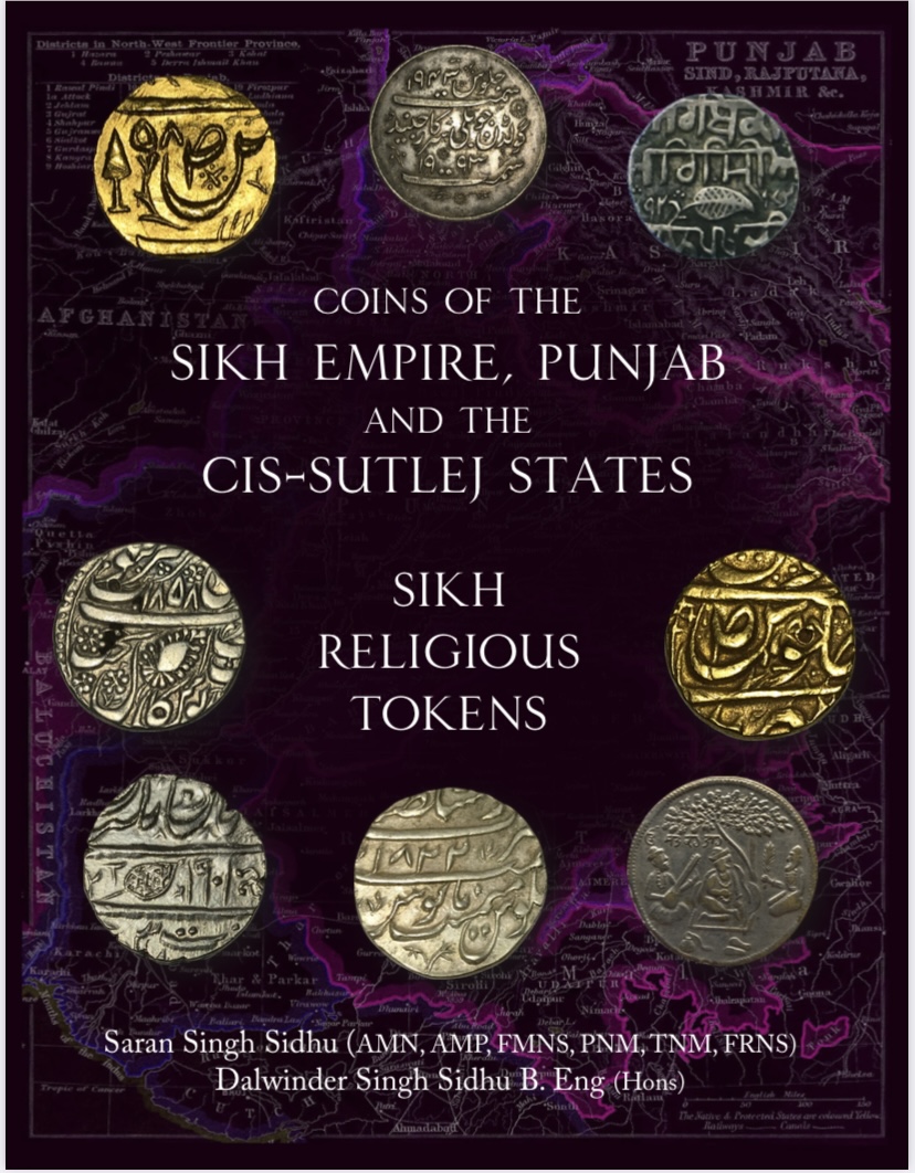 This book introduces the rich heritage of the Sikhs in Punjab and other parts of the world through Sikh Coins and Sikh Tokens with actual photographs included. From the very first known coins issued by Baba Banda Singh Bahadur in 1711, to the last Sikh Coins issued by Maharaja Duleep Singh in early 1849, one can follow the rise and fall of the Sikh Empire. Gold Mohurs, Silver Rupees and Copper Paisas are well documented, with numerous unlisted types and varieties. Also included are known Gurdwara Tokens issued from 1700 – 2022, and are being recorded for the very first time in this publication. The research for this book first started in the 1960’s and concluded in 2022.
